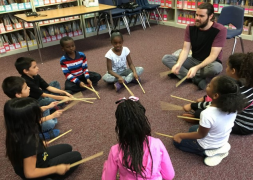 Around 2014, Cynthia Smith, Sparks’ founder and Executive Director, met Amber Sarpy, a Board-Certified Music Therapist, at a school district conference. They briefly introduced themselves and exchanged business cards. In the spring of 2016, Amber reached out to Cynthia, who informed her about the persistent, challenging behaviors displayed by the children of inmates with whom Sparks was working, even though the children enjoyed participating in the music groups that Sparks had been offering. Cynthia let Amber know that Sparks was seeking to implement changes in the program.